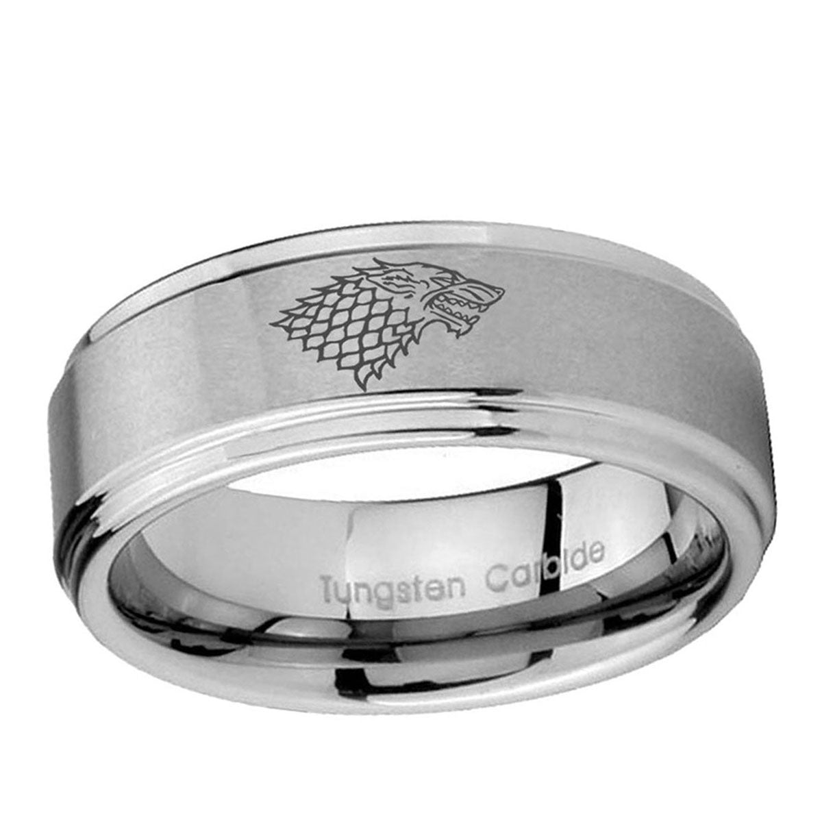 10mm Game Of Thrones House Stark Direwolf Step Edges Brushed Tungsten Carbide Men's Wedding Ring