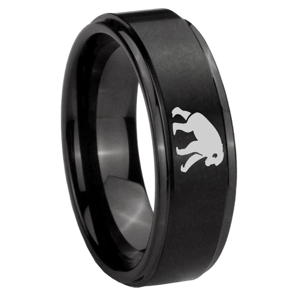 Intruding 5, 8mm Chimpanzee Step Edges Brush Black Tungsten Carbide Bands Ring . Offer in both 5mm and 8mm band width brush black plated finished from size 4 to 14