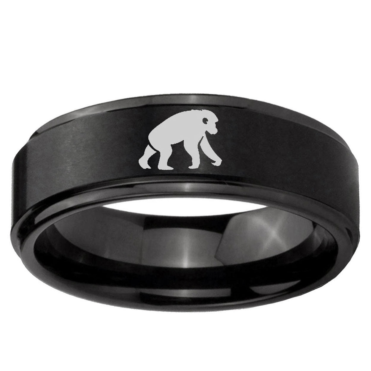 5, 8mm Chimpanzee Step Edges Brush Black Tungsten Carbide Bands Ring