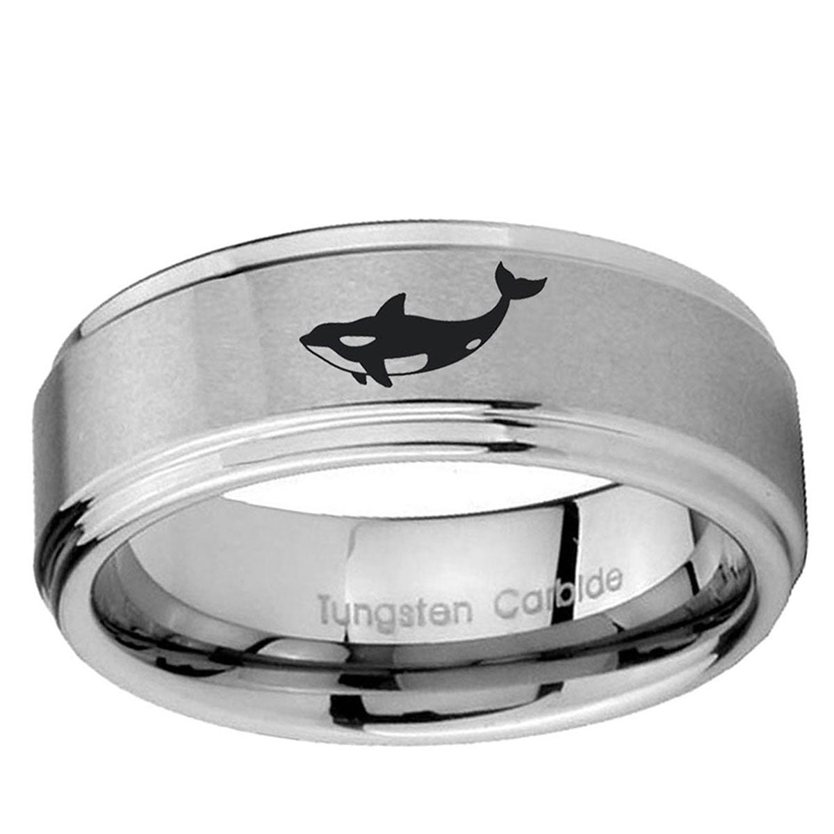 Celebrate with the 10mm Keller Whale Step Edges Brushed Tungsten Carbide Men's Wedding Ring. This brushed tungsten ring with Keller Whale design and step edges is perfect for weddings.