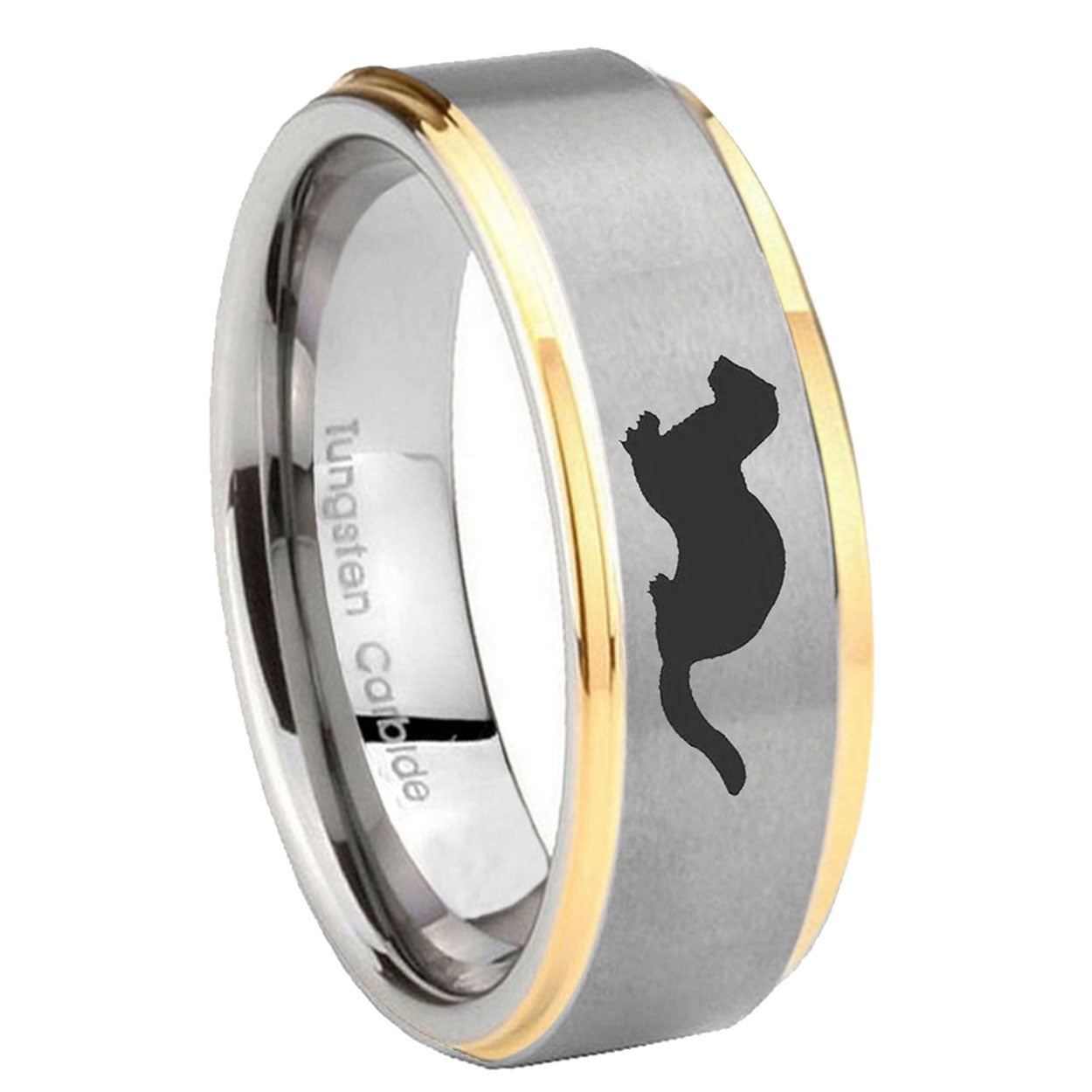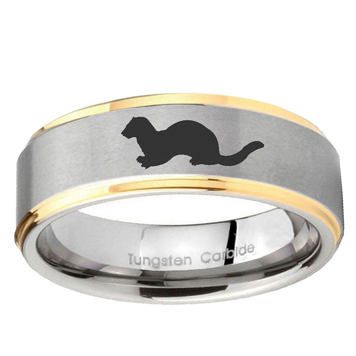 Style the 10mm Otter Step Edges Gold 2 Tone Tungsten Carbide Bands Ring. This gold and 2-tone tungsten ring with Otter design is perfect for men.