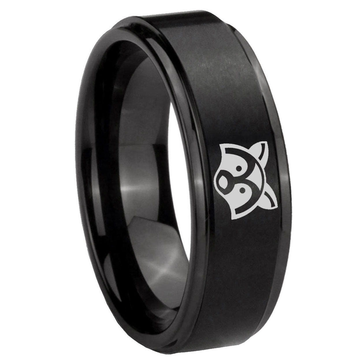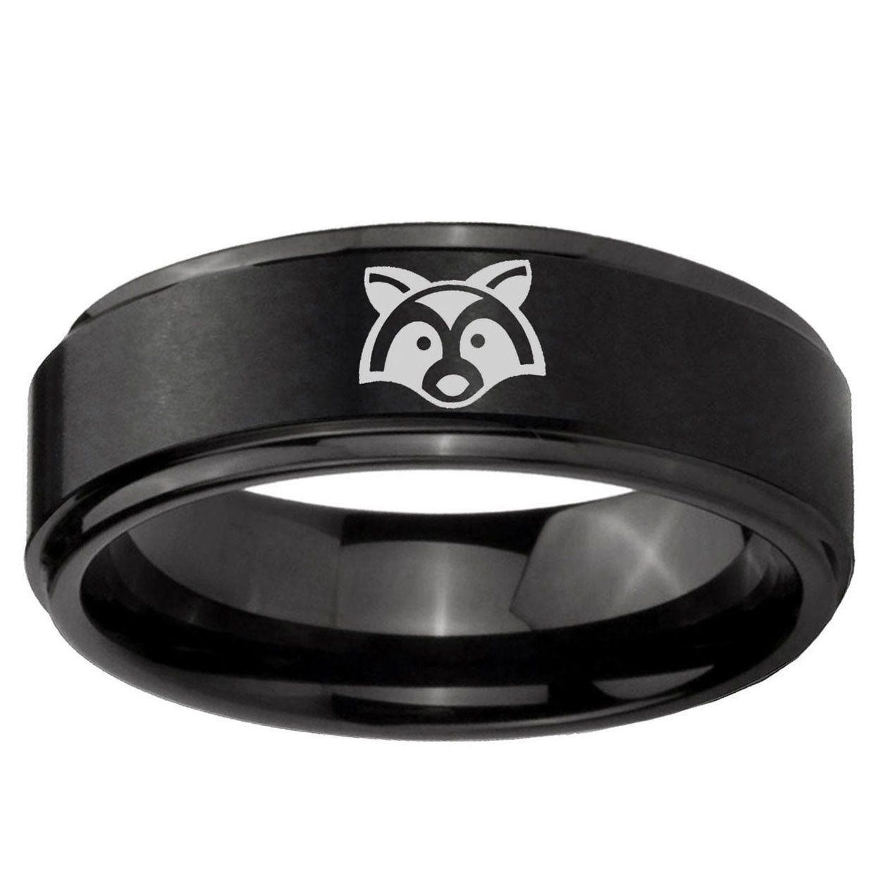 Make a promise with the 10mm Raccoon Animal Step Edges Brush Black Tungsten Men's Promise Rings. This brushed black ring with step edges and Raccoon Animal design is ideal for commitments.