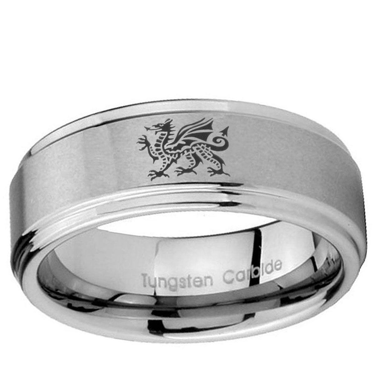 Propose with the 10mm Dragon Step Edges Brushed Tungsten Carbide Mens Engagement Band. This brushed tungsten ring with Dragon design and step edges is ideal for engagements.
