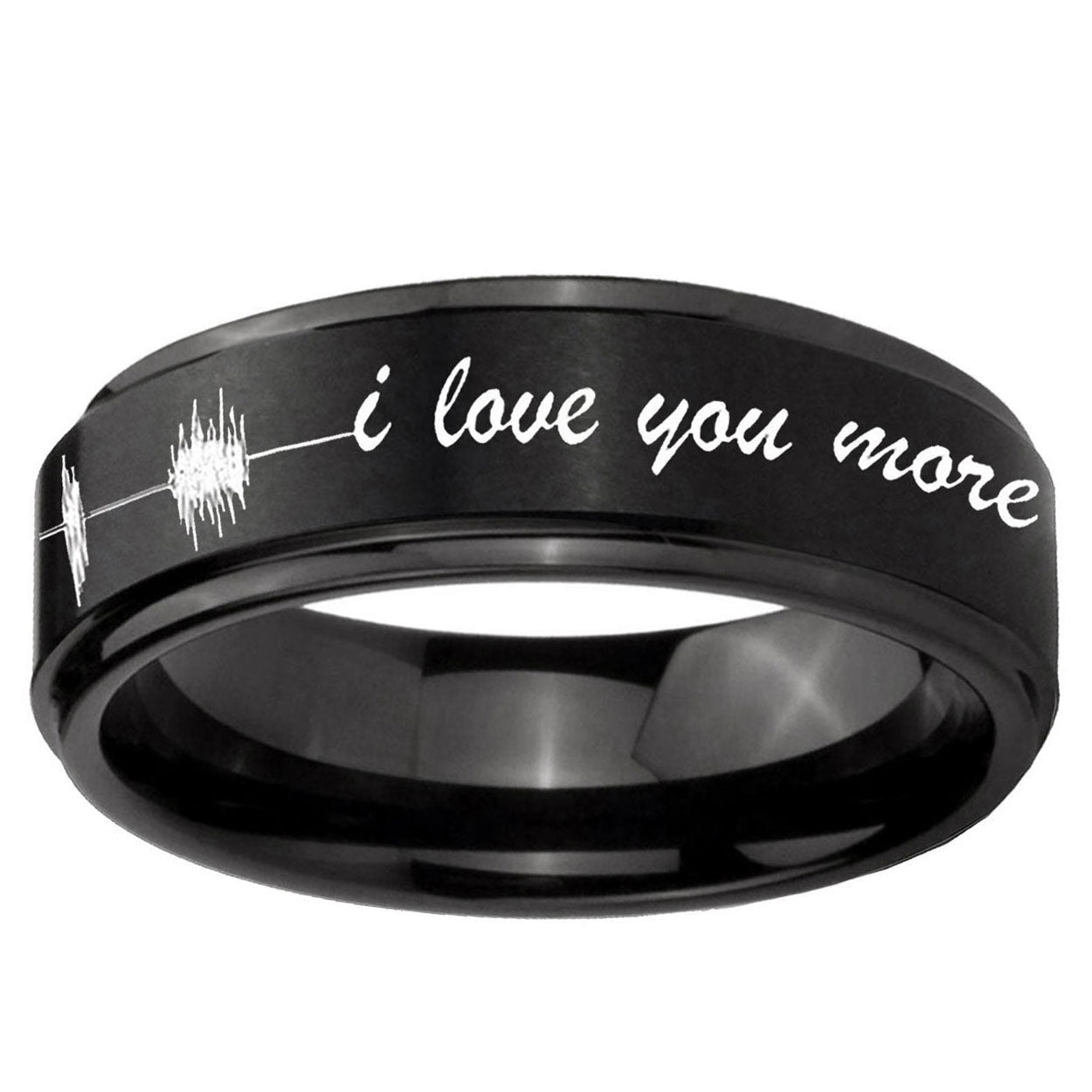 10mm Sound Wave I love you more Step Edges Brush Black Tungsten Men's Ring