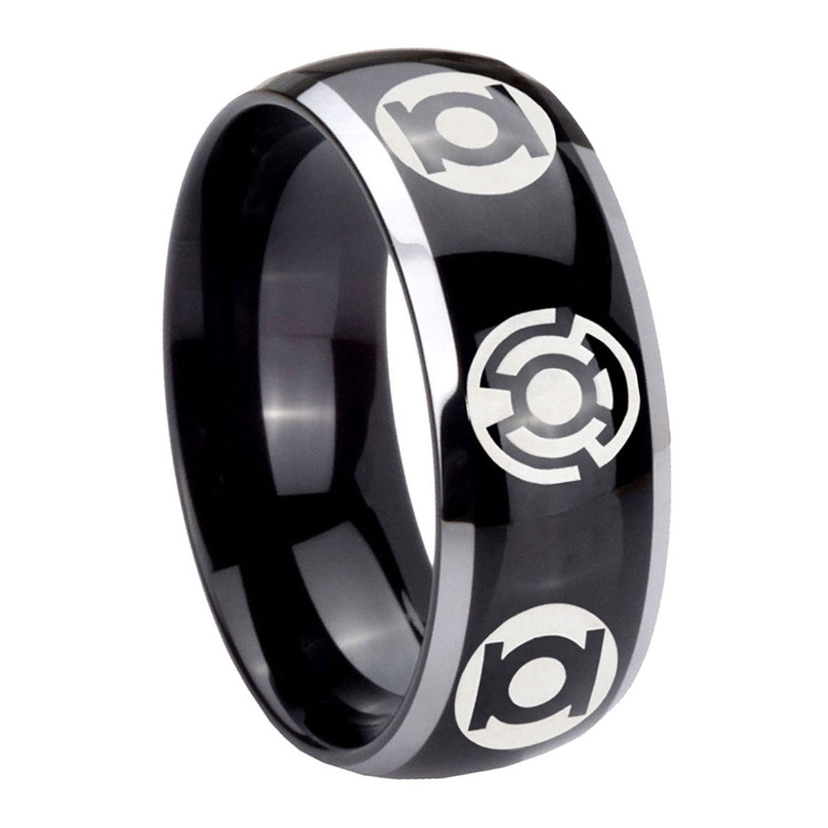 Intruding 5, 8mm Blue Green Lantern Dome Two Tone Black Tungsten Men's Wedding Rings . Offer in both 5mm and 8mm band width polished black plated two tone finished from size 4 to 14