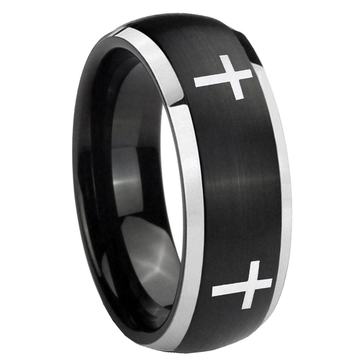 Buy the His And Hers Crosses Beveled Edges Glossy Black 2 Tone Tungsten Anniversary Ring. Sleek and modern.