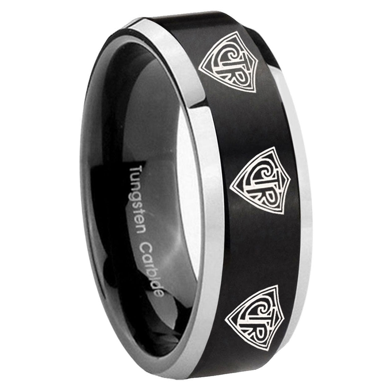 Buy the His And Hers Multiple CTR Beveled Silver Tungsten Wedding Ring Engraved. Classic style.