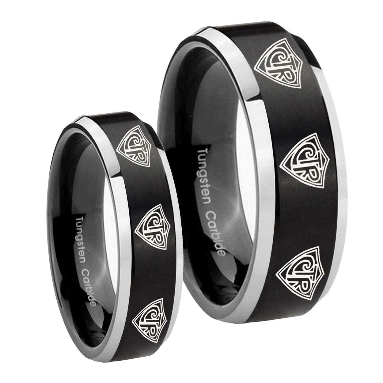 His Hers Multiple CTR Beveled Brush Black 2 Tone Tungsten Men's Promise Rings Set