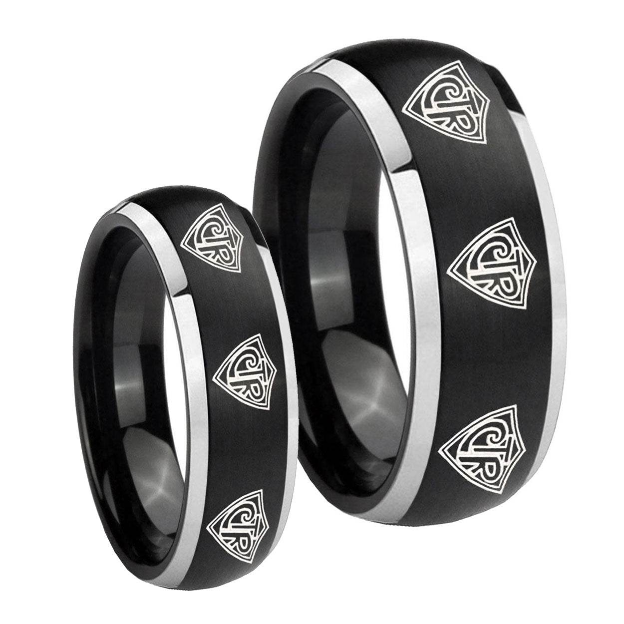 His Hers Multiple CTR Dome Brushed Black 2 Tone Tungsten Men's Bands Ring Set