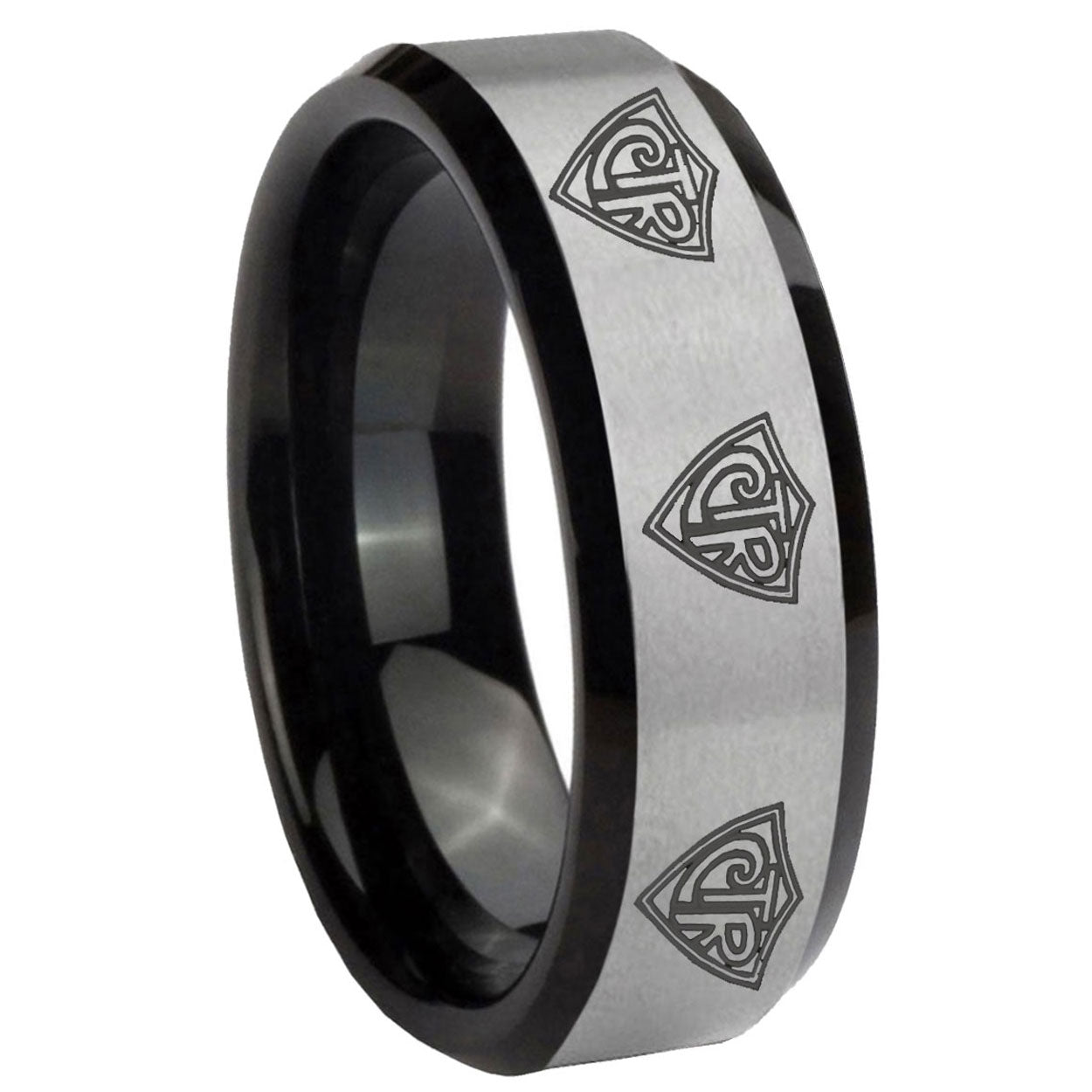 Buy the His And Hers Multiple CTR Beveled Silver Tungsten Wedding Ring Engraved. Classic style.