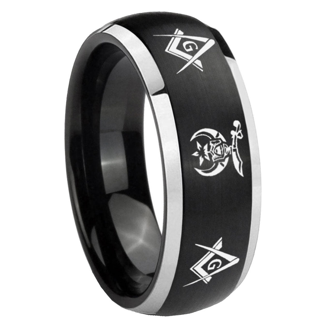 Buy the His And Hers Masonic Shriners Beveled Glossy Black Tungsten Engraved Ring. Sleek design.