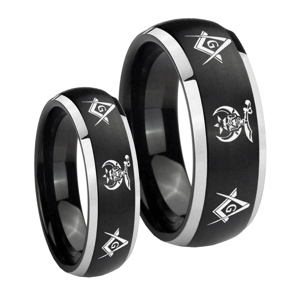 His Hers Masonic Shriners Dome Brushed Black 2 Tone Tungsten Promise Ring Set