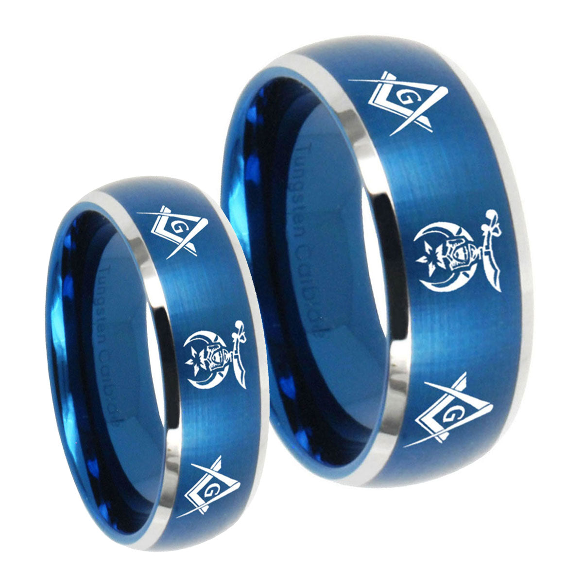 His Hers Masonic Shriners Dome Brushed Blue 2 Tone Tungsten Men's Ring Set