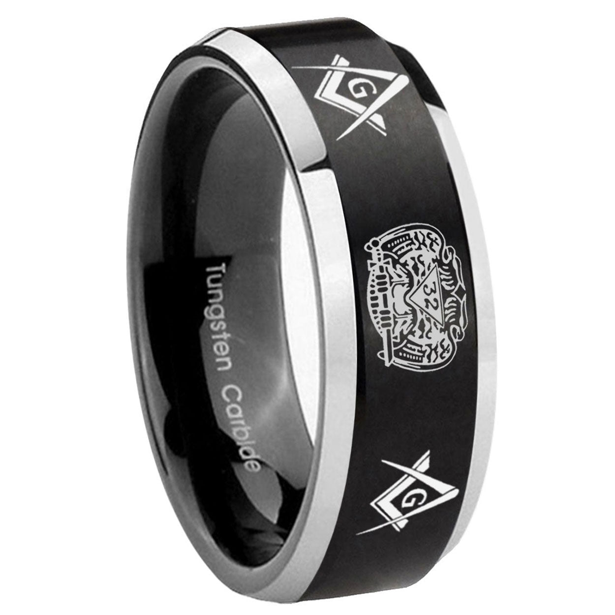 Buy the His And Hers Masonic 32 Design Beveled Silver Tungsten Wedding Band Ring for Men. Classic style.