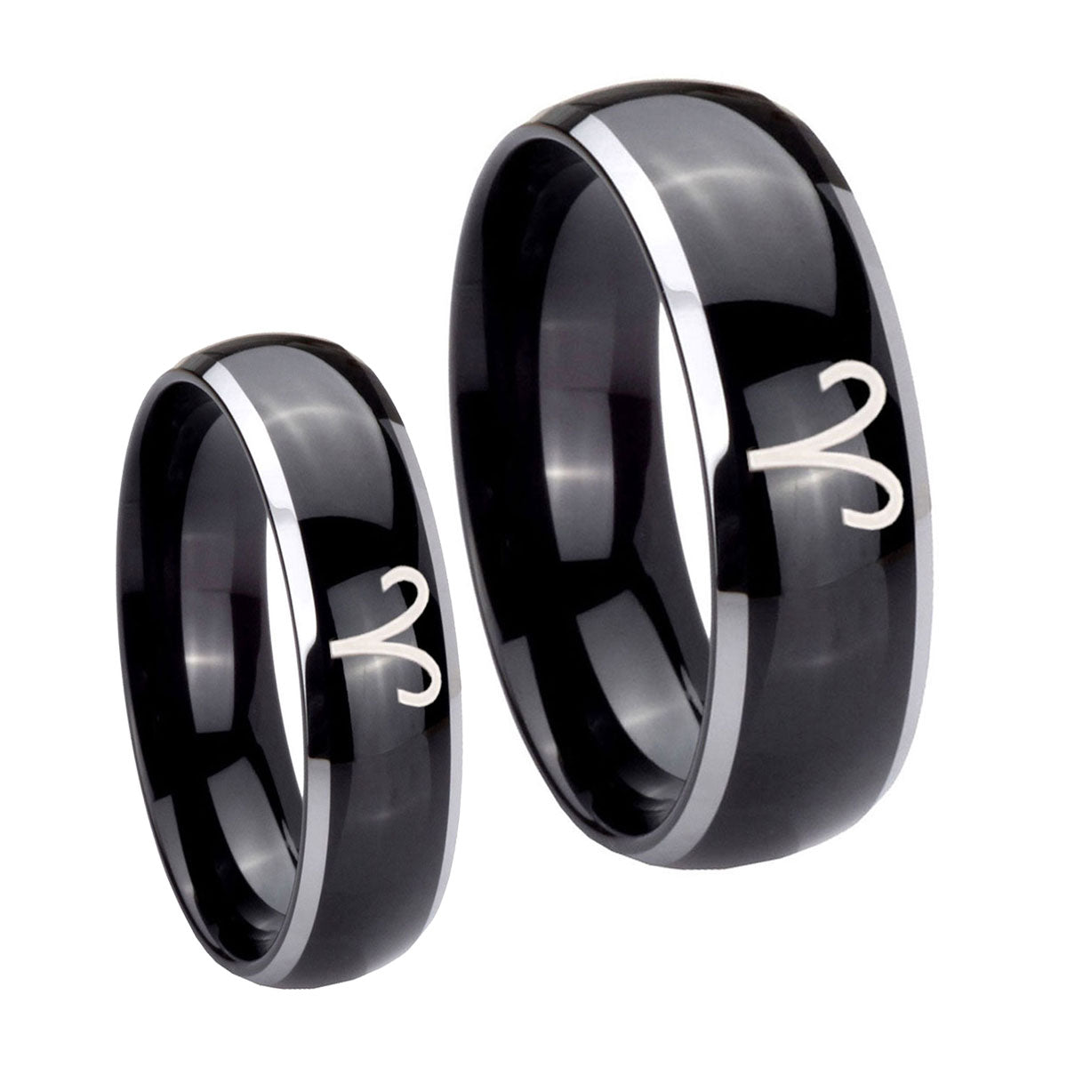 His Hers Aries Zodiac Dome Glossy Black 2 Tone Tungsten Wedding Band Mens Set