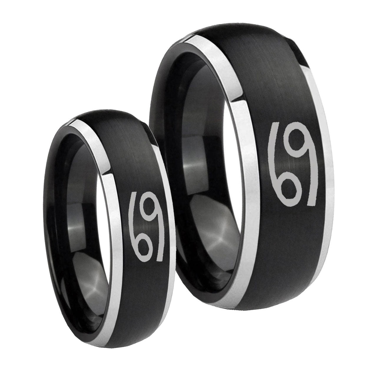 His Hers Cancer Horoscope Dome Brushed Black 2 Tone Tungsten Mens Ring Set