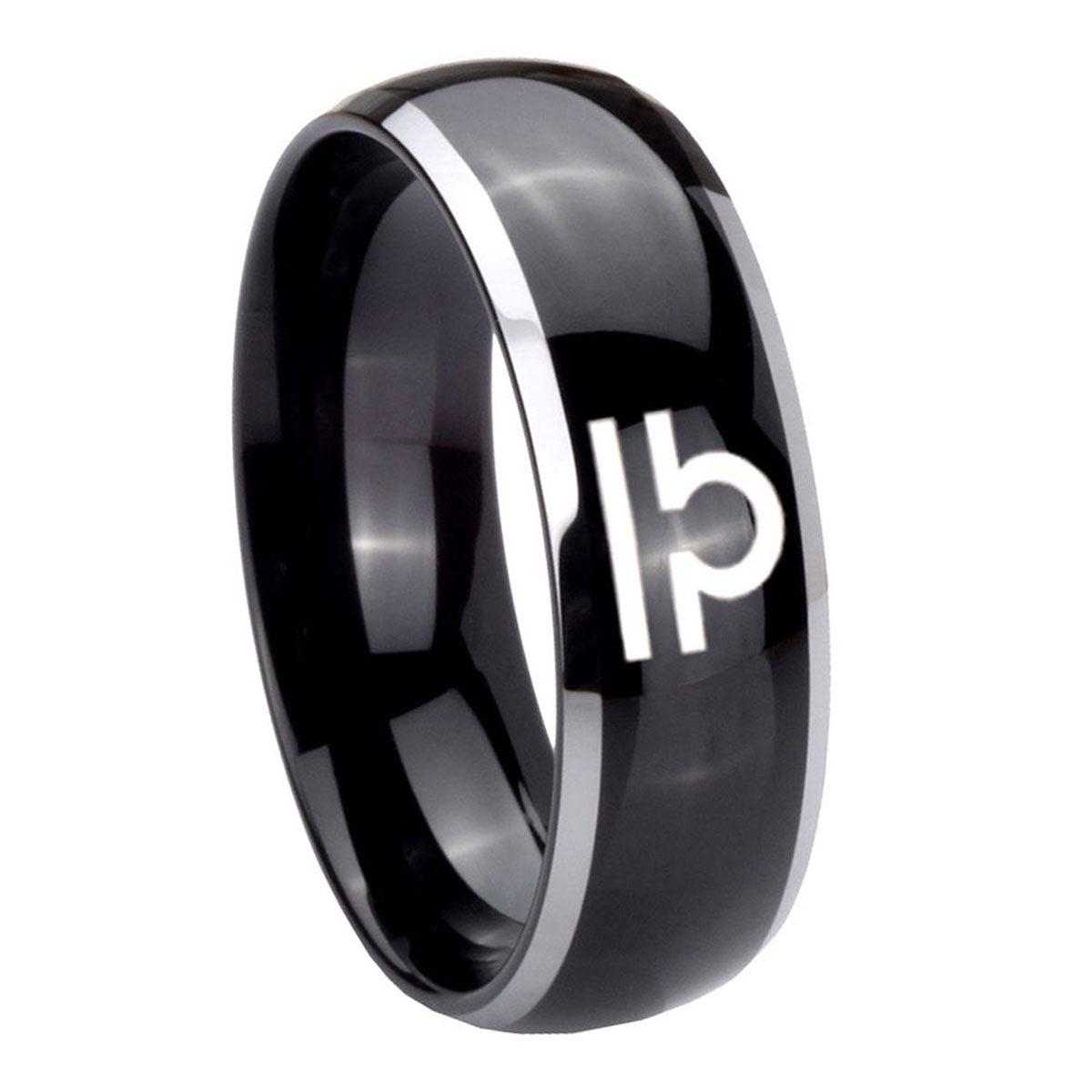 Buy the His And Hers Libra Horoscope Beveled Glossy Black Tungsten Wedding Engagement Ring. Sleek design.