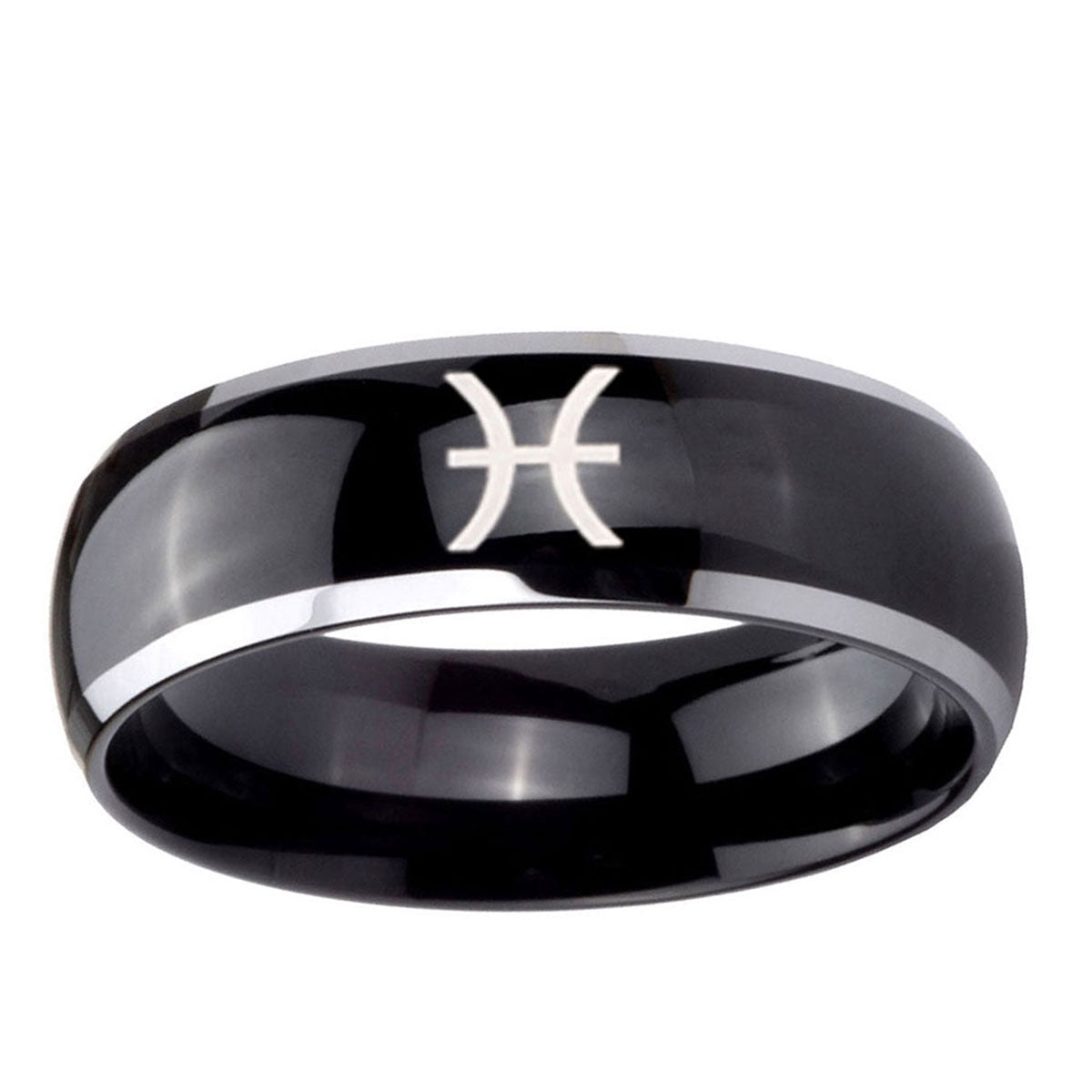 10mm Pisces Zodiac Dome Glossy Black 2 Tone Tungsten Men's Engagement Ring