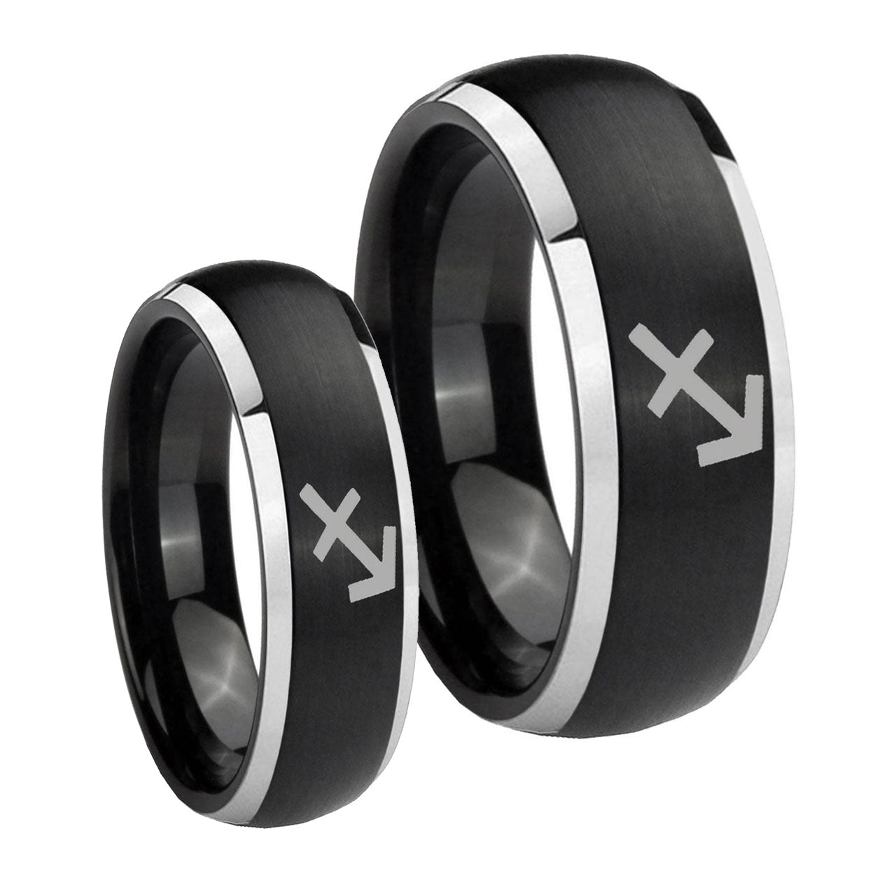 His Hers Sagittarius Zodiac Dome Brushed Black 2 Tone Tungsten Mens Band Set