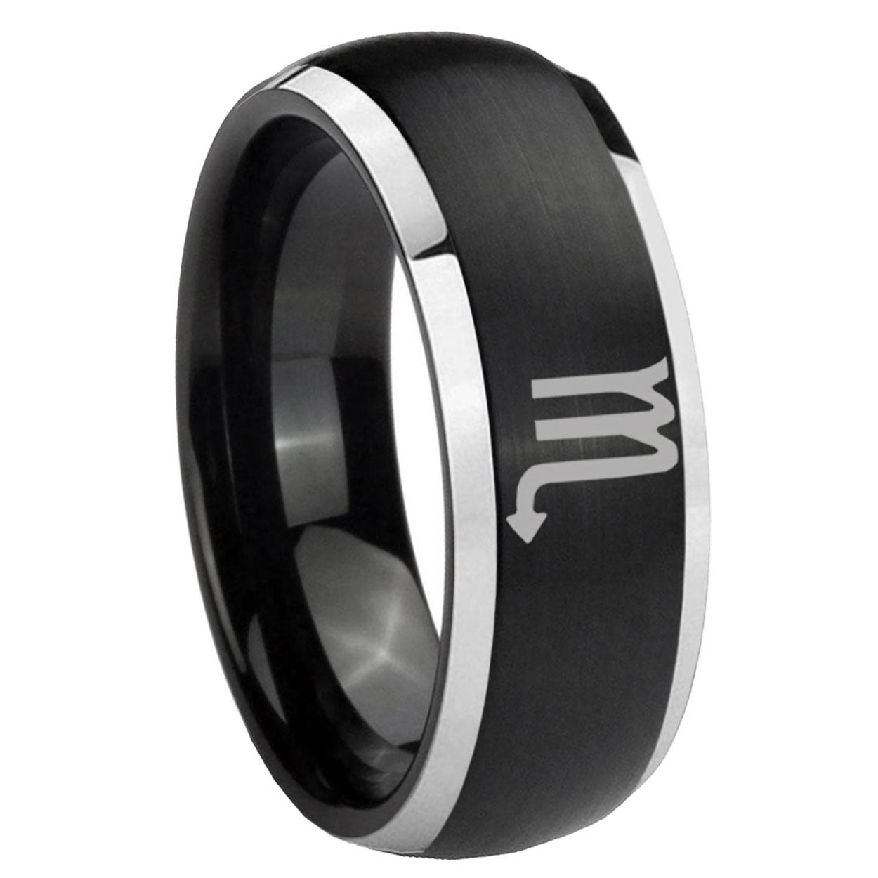 Buy the His And Hers Scorpio Horoscope Dome Glossy Black Tungsten Anniversary Ring for Men. Bold style.