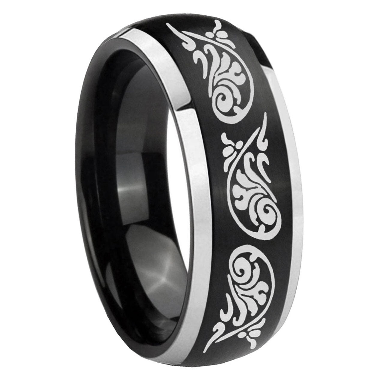 His Hers Etched Tribal Pattern Dome Brushed Black 2 Tone Tungsten Bands Ring Set