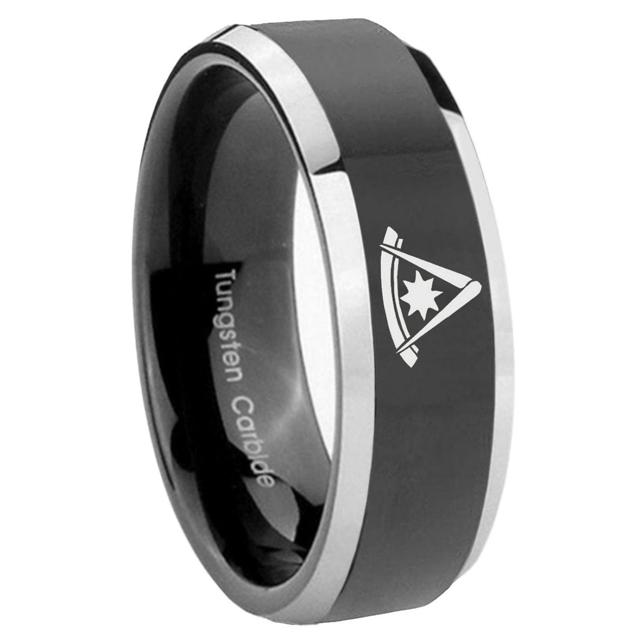 His Hers Pester Master Masonic Beveled Glossy Black 2 Tone Tungsten Mens Ring Set