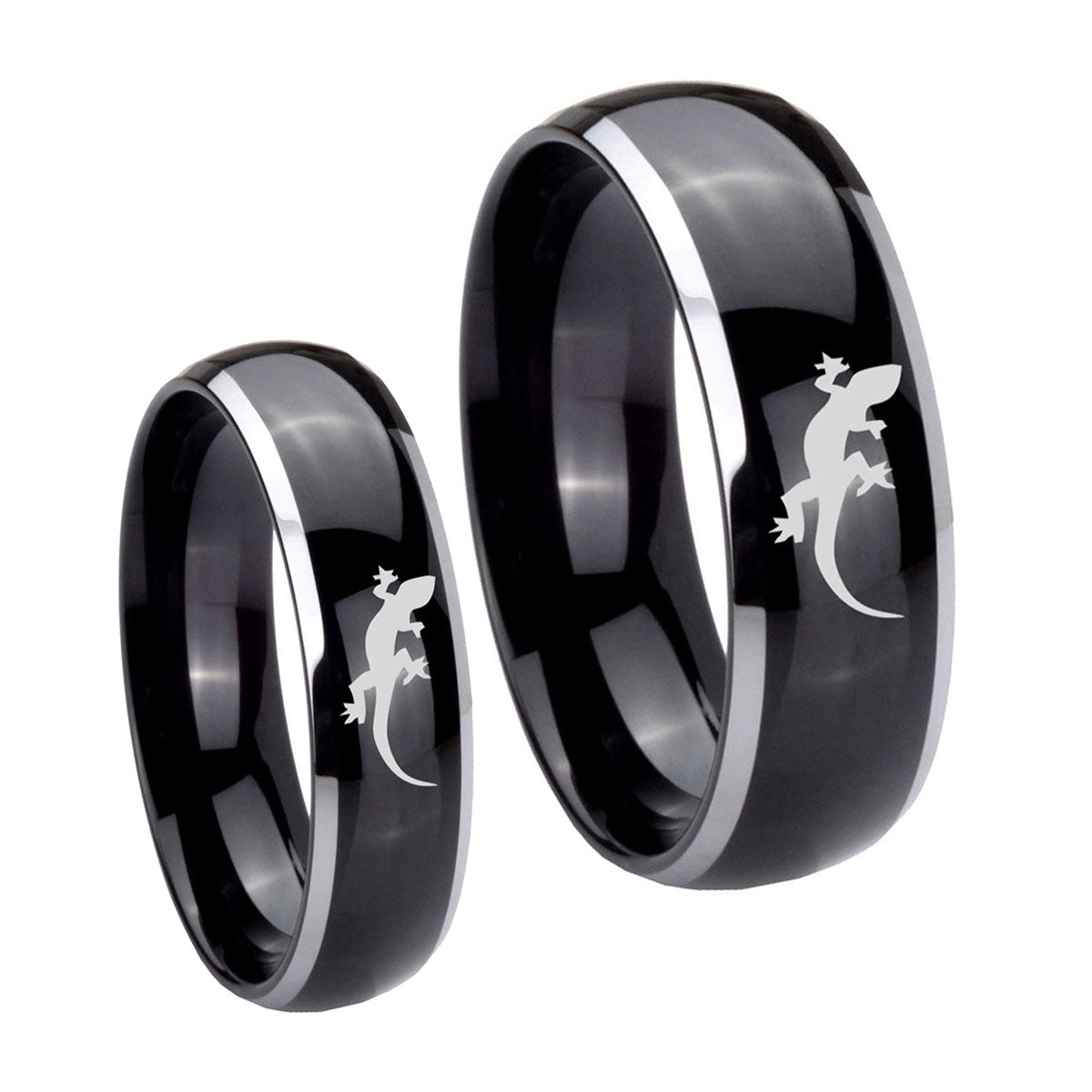 Bride and Groom Lizard Dome Glossy Black 2 Tone Tungsten Carbide Bands Ring Set