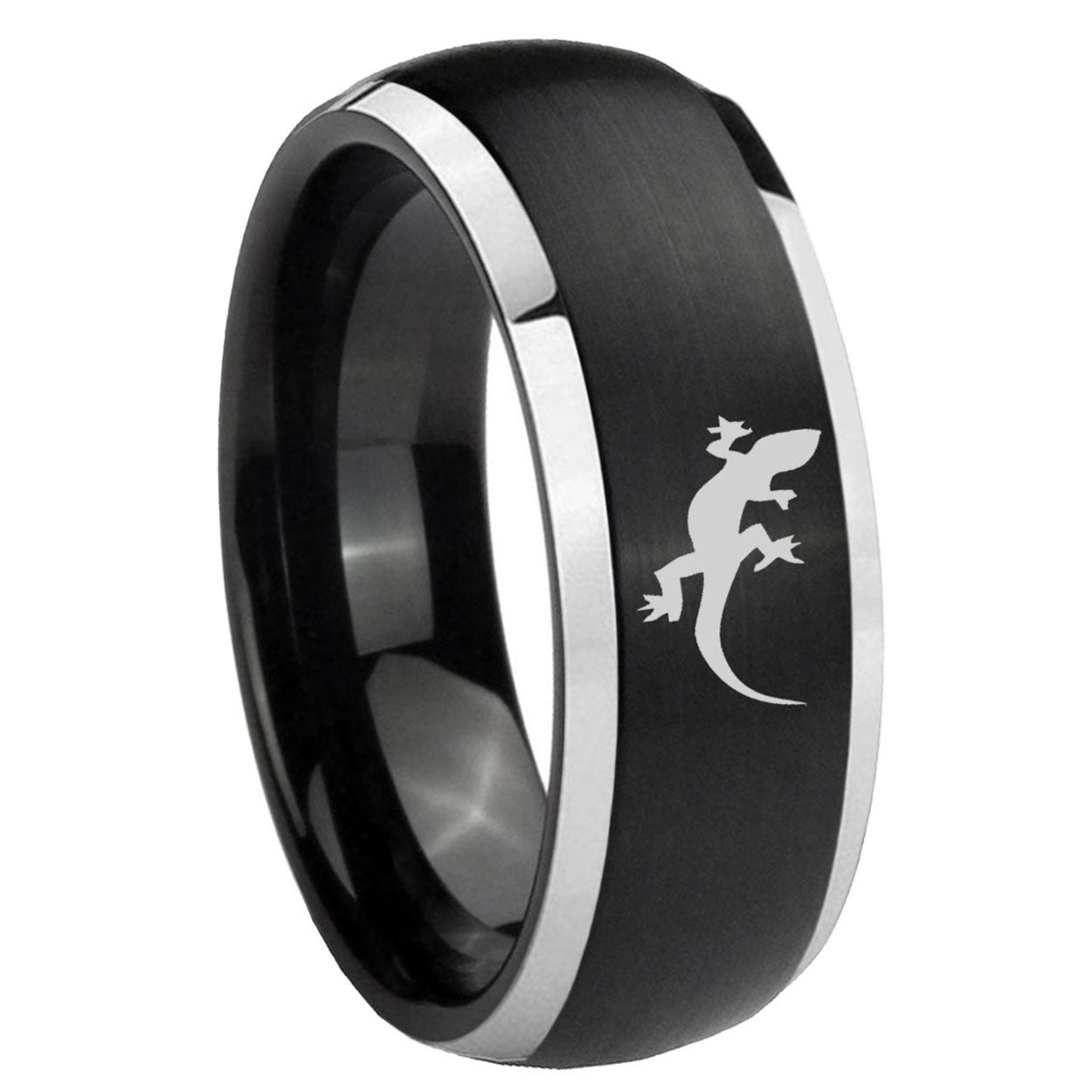 5, 8mm Lizard Dome Brushed Black 2 Tone Tungsten Carbide Custom Mens Ring