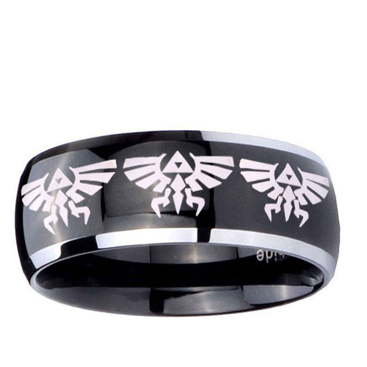10mm Multiple Zelda Skyward Sword Dome Glossy Black 2 Tone Tungsten Men's Ring
