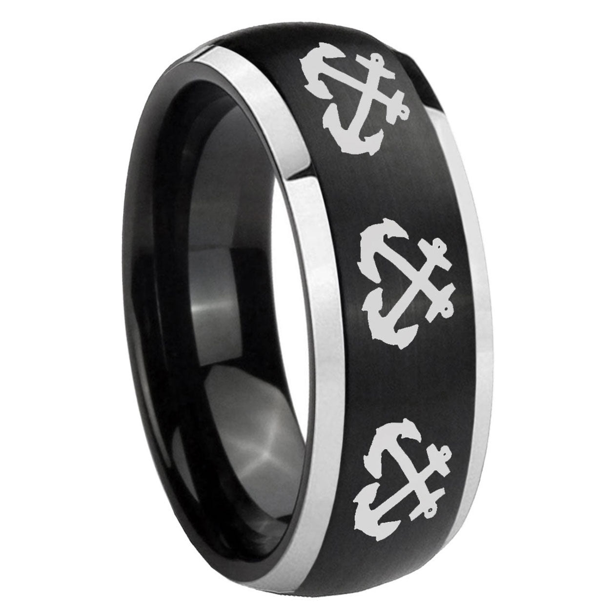 5, 8mm Multiple Anchor Dome Brushed Black 2 Tone Tungsten Custom Ring for Men