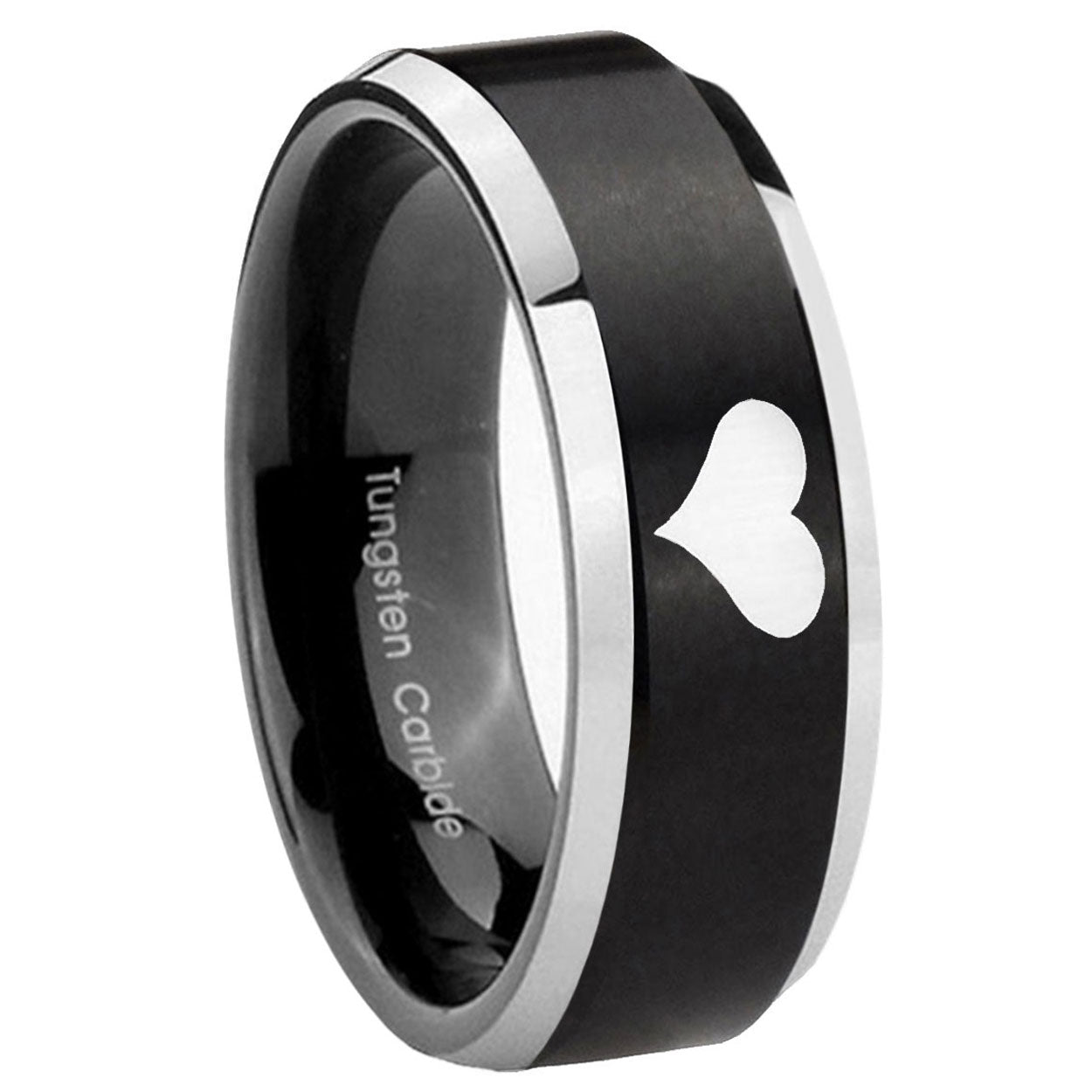 His Hers Heart Beveled Edges Brush Black 2 Tone Tungsten Mens Promise Ring Set