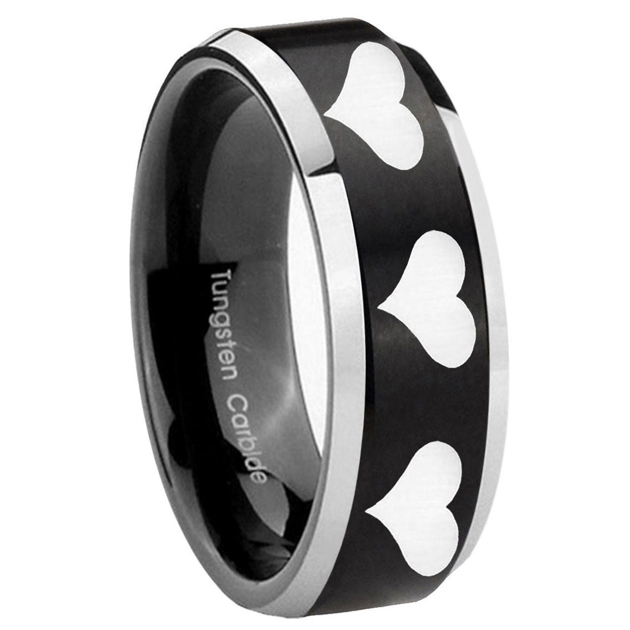 Celebrate with our His And Hers Multiple Heart Beveled Edges Brush Black 2 Tone Tungsten Anniversary Ring, bold and romantic.