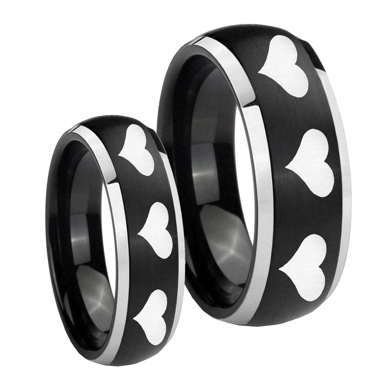His Hers Multiple Heart Dome Brushed Black 2 Tone Tungsten Men's Bands Ring Set