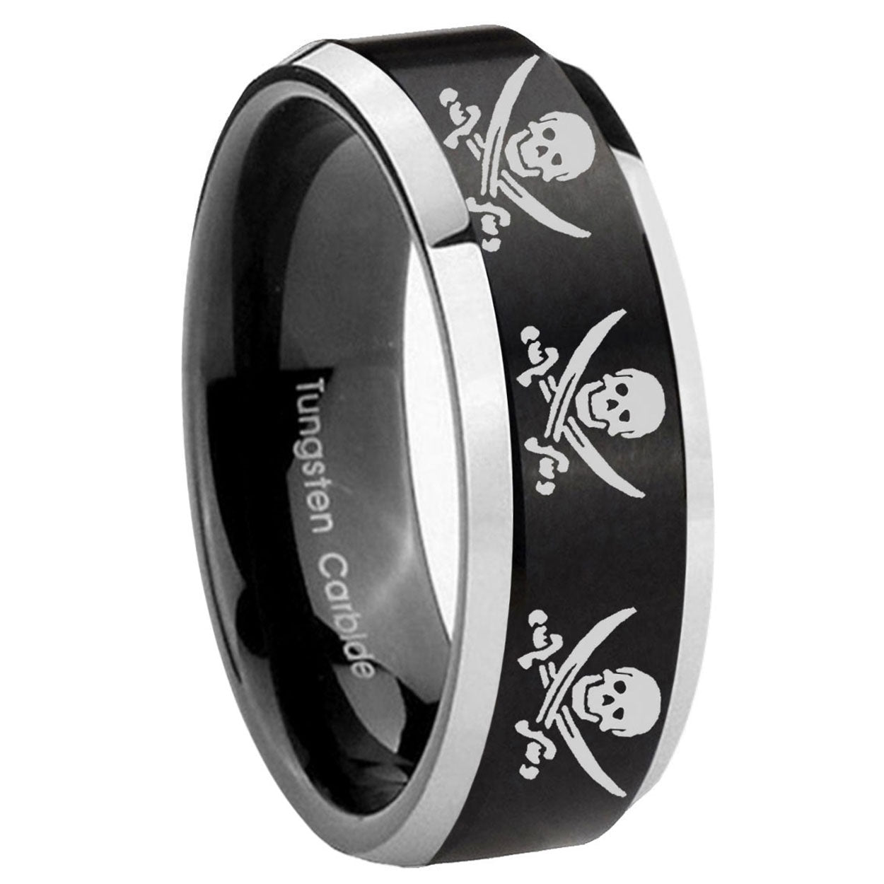 Celebrate with our His And Hers Multiple Skull Pirate Pipe Cut Brush Black Tungsten Anniversary Ring, bold and adventurous.