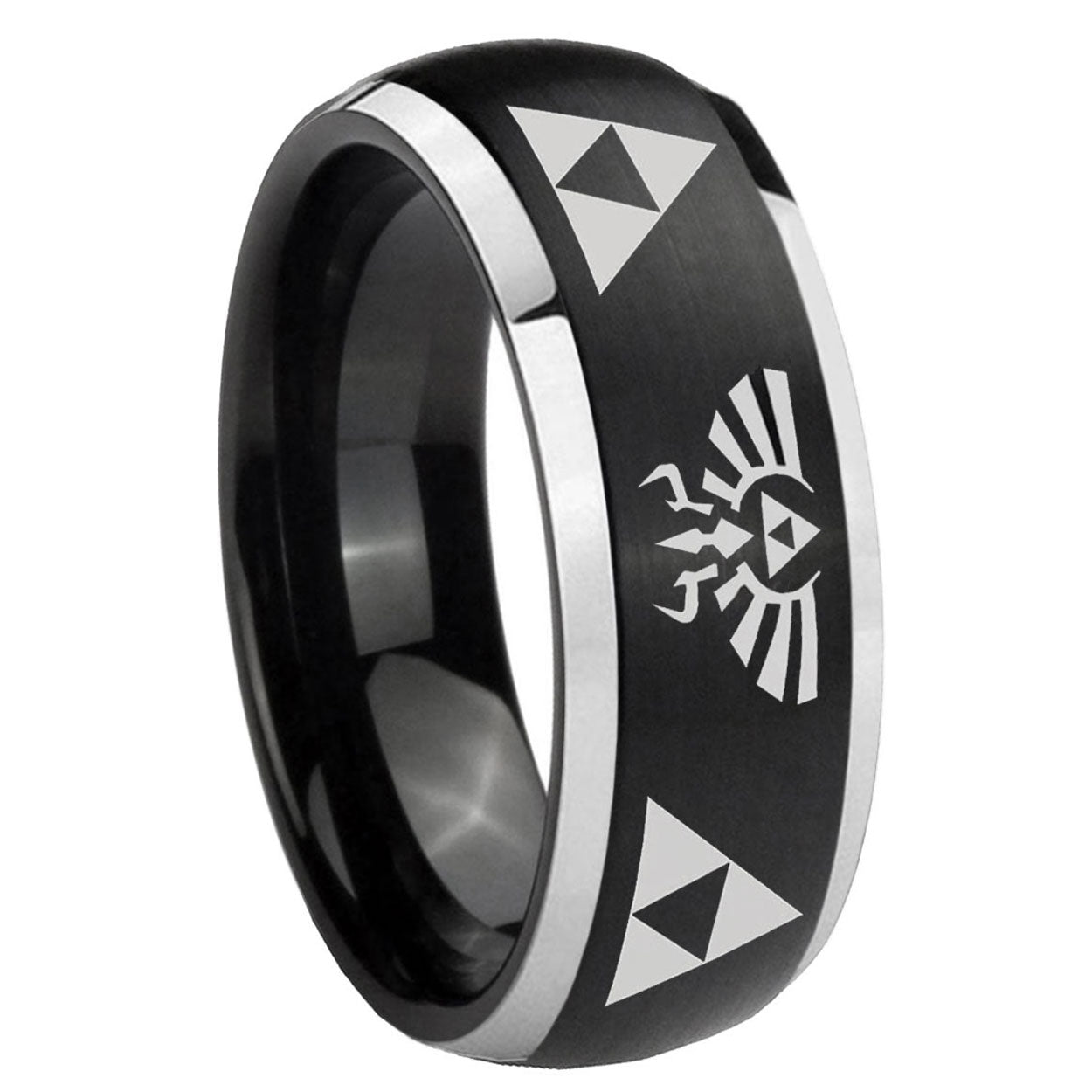 Celebrate with our His And Hers Legend of Zelda Dome Black Tungsten Carbide Anniversary Ring, bold and iconic.