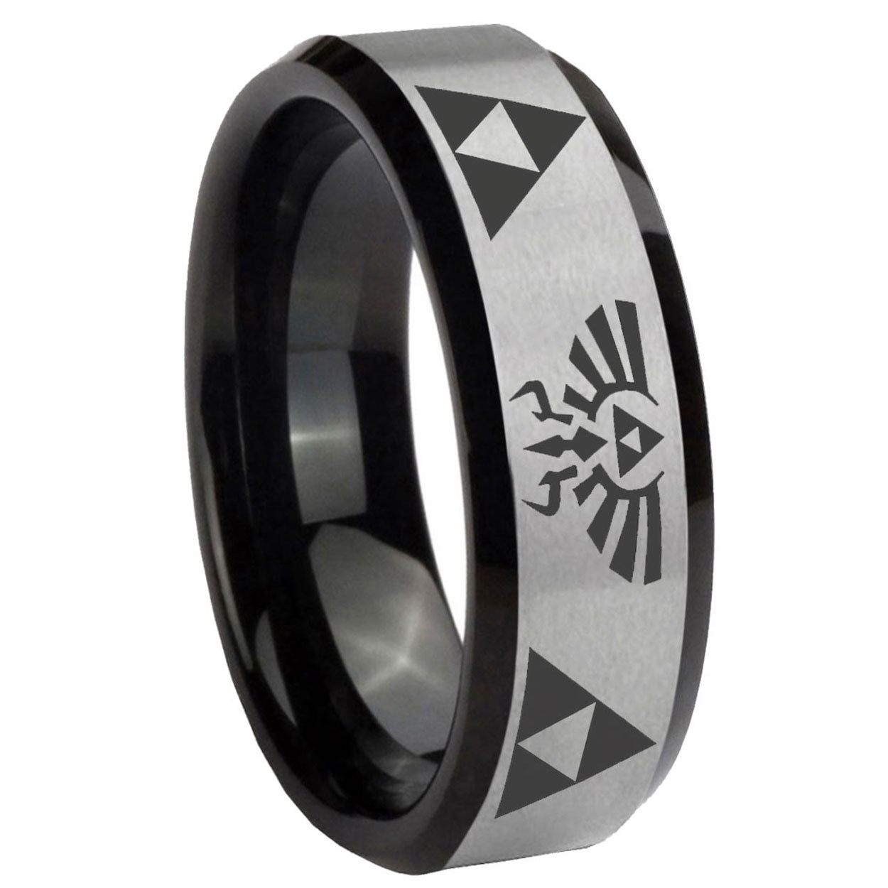 His Hers Legend of Zelda Beveled Brush Black 2 Tone Tungsten Rings Set