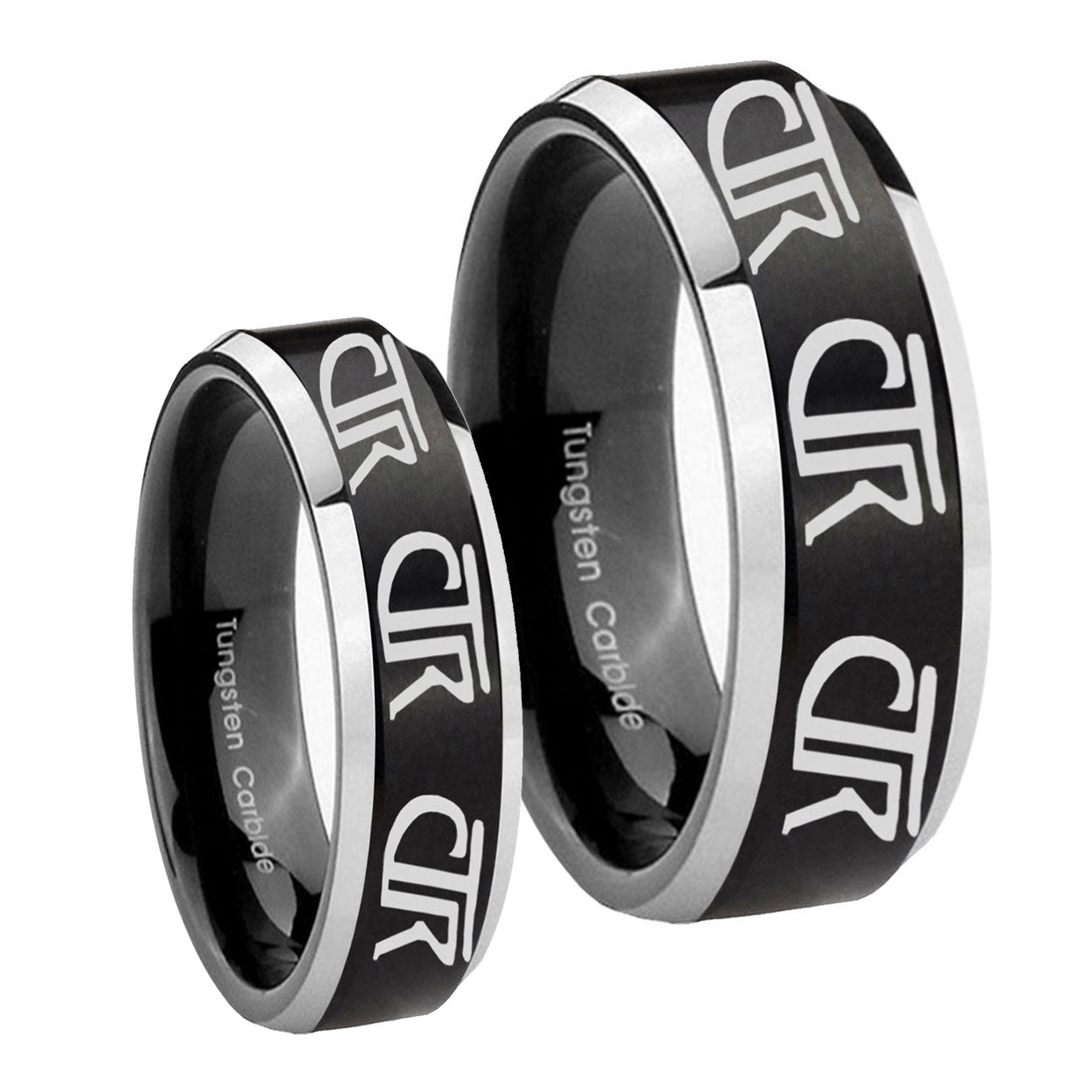 His Hers Multiple CTR Beveled Brush Black 2 Tone Tungsten Men's Wedding Ring Set