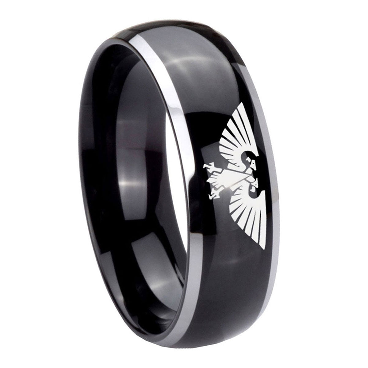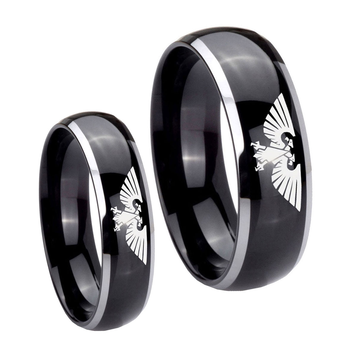 Bride and Groom Aquila Dome Glossy Black 2 Tone Tungsten Mens Bands Ring Set