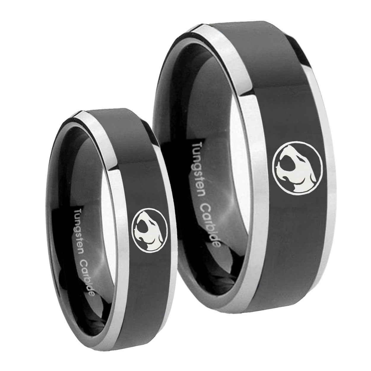 His Hers Thundercat Beveled Edges Glossy Black 2 Tone Tungsten Mens Ring Set