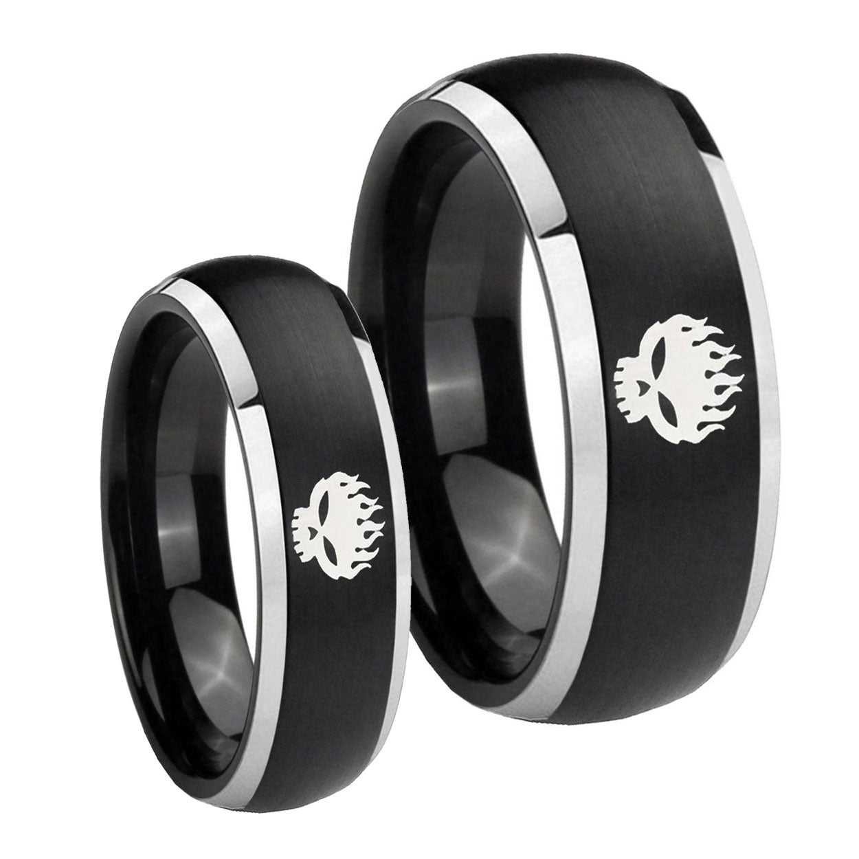 His Hers Offspring Dome Brushed Black 2 Tone Tungsten Mens Anniversary Ring Set
