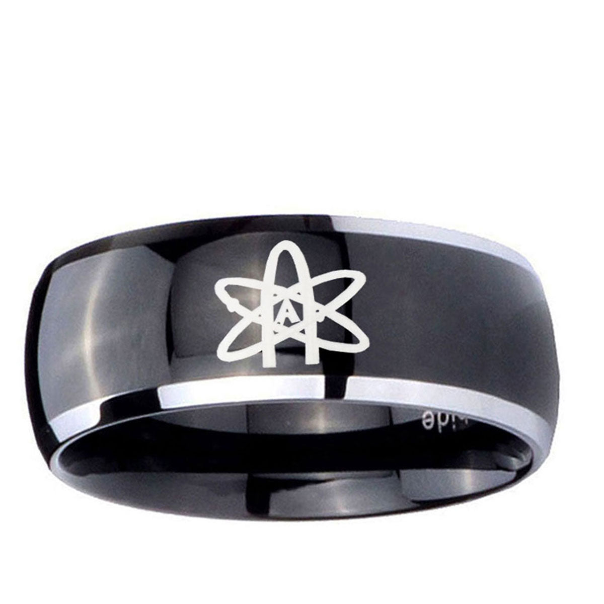 10mm American Atheist Dome Glossy Black 2 Tone Tungsten Custom Ring for Men
