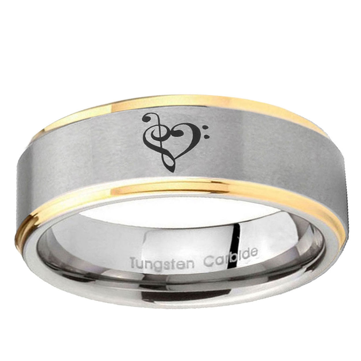 10mm Music & Heart Step Edges Gold 2 Tone Tungsten Carbide Engagement Ring