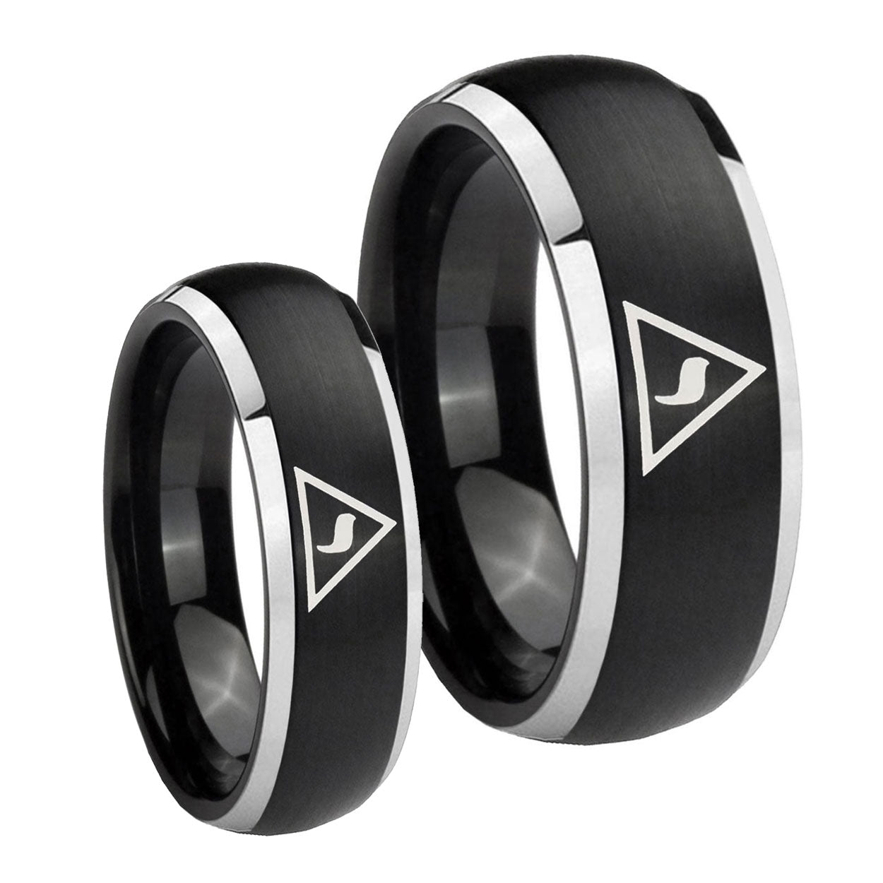 Bride and Groom Masonic Yod Dome Brushed Black 2 Tone Tungsten Mens Ring Set