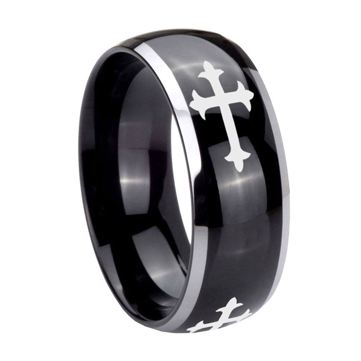 Celebrate with our His And Hers Christian Cross Dome Black Tungsten Carbide Anniversary Ring, bold and spiritual.