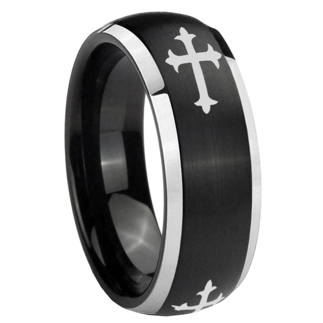 Celebrate with our His And Hers Christian Cross Dome Black Tungsten Carbide Anniversary Ring, bold and spiritual.