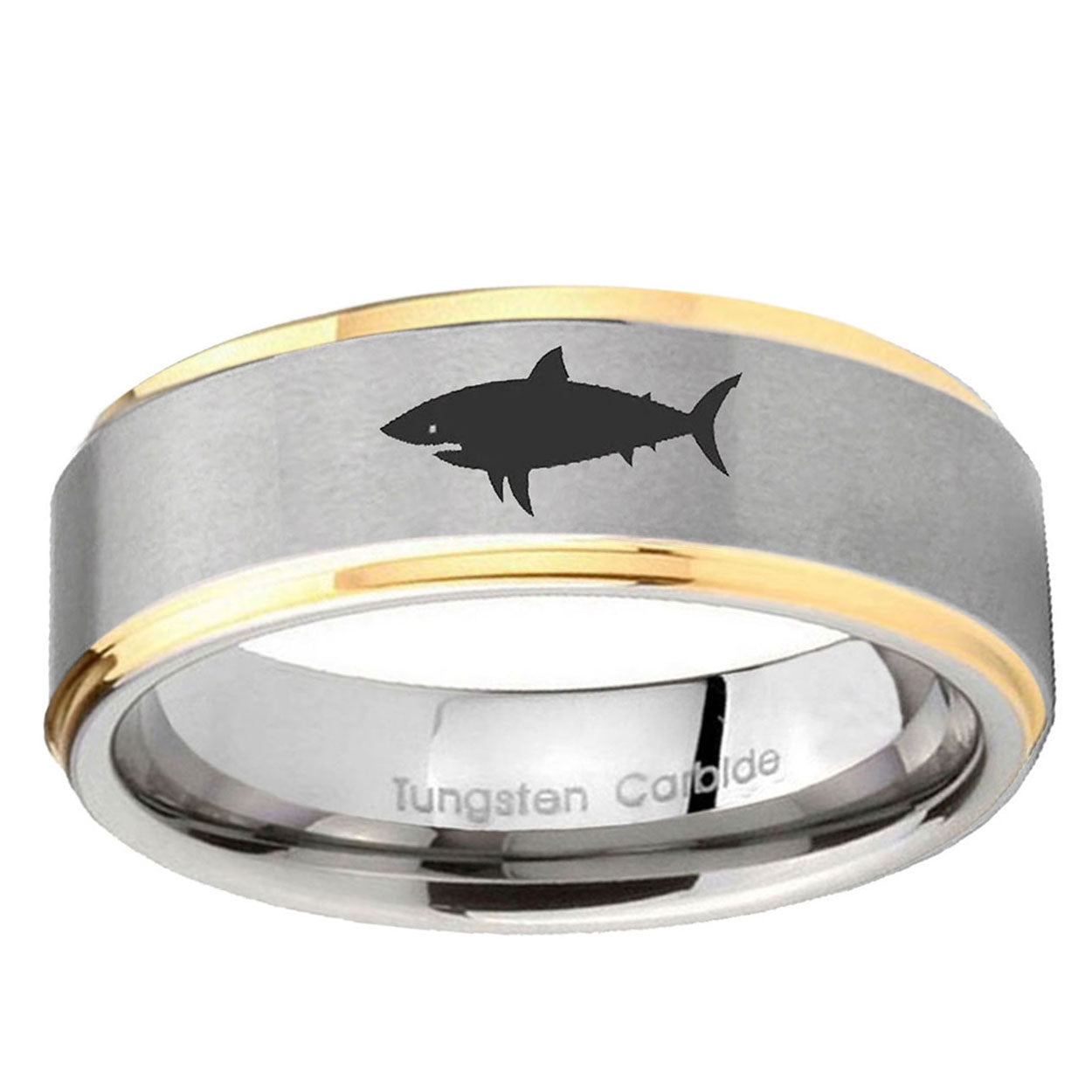 5, 8mm Shark Step Edges Gold 2 Tone Tungsten Carbide Mens Ring