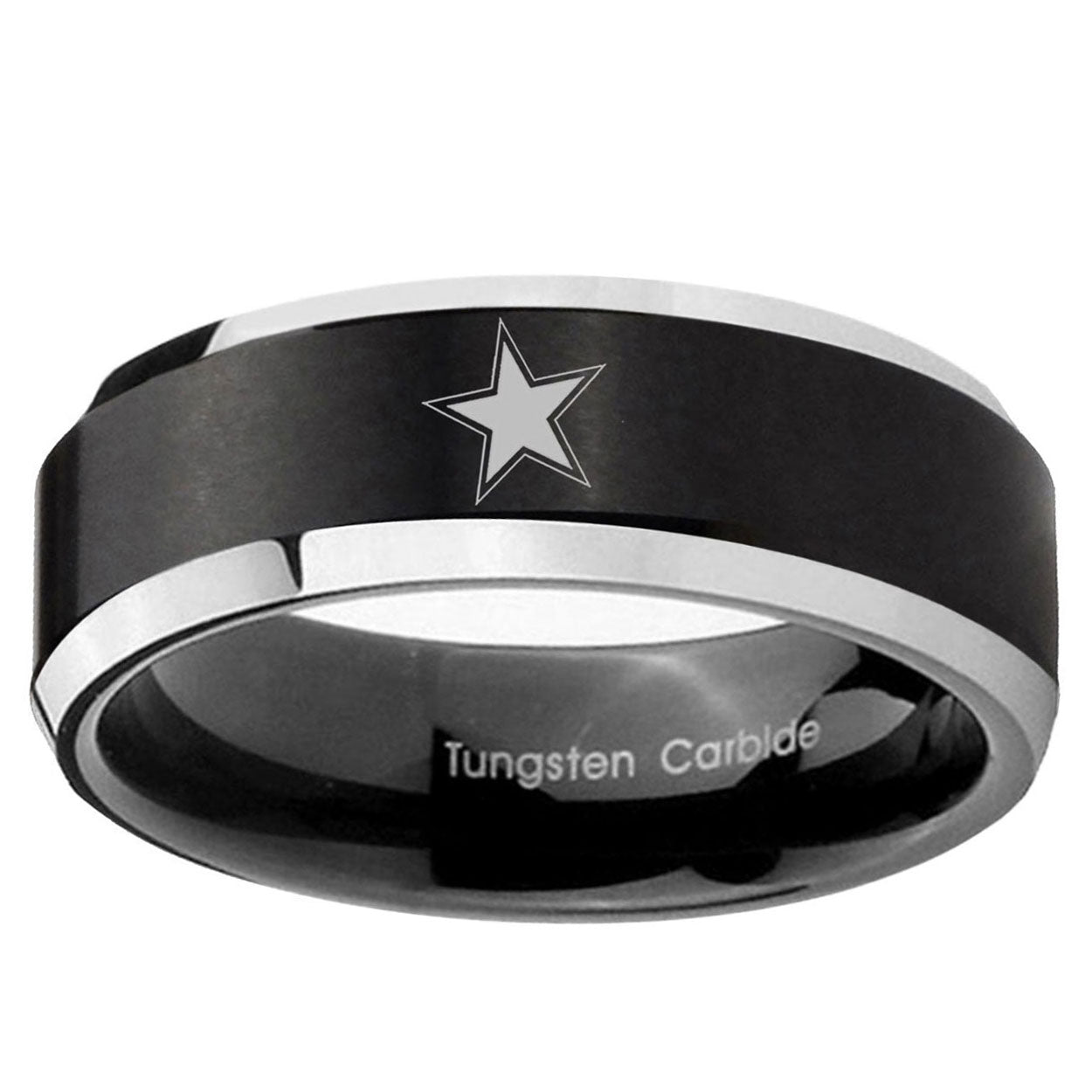 10mm Cowboys Star Beveled Brush Black 2 Tone Tungsten Mens Ring Engraved