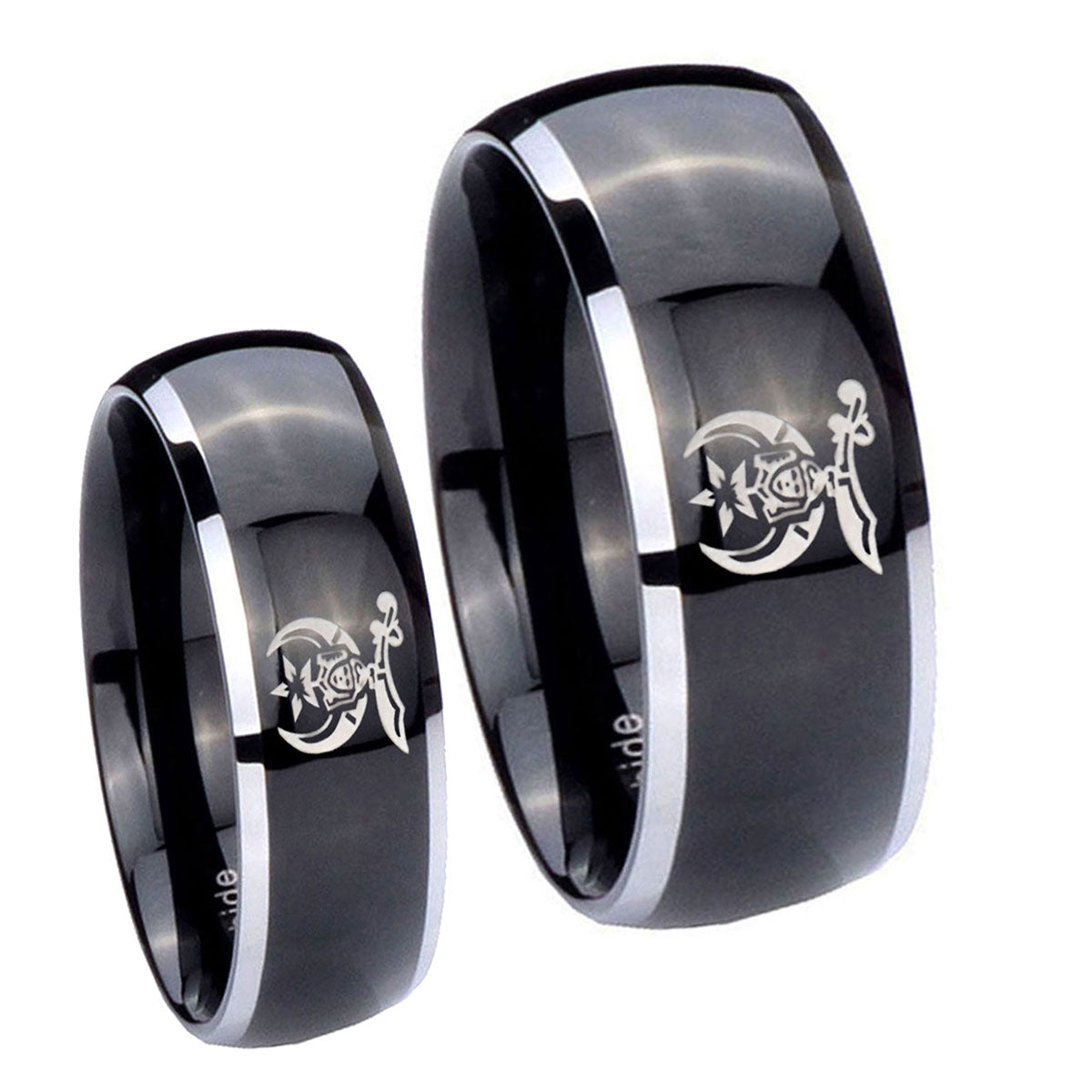 His Hers Masonic Shriners Dome Glossy Black 2 Tone Tungsten Custom Ring Set