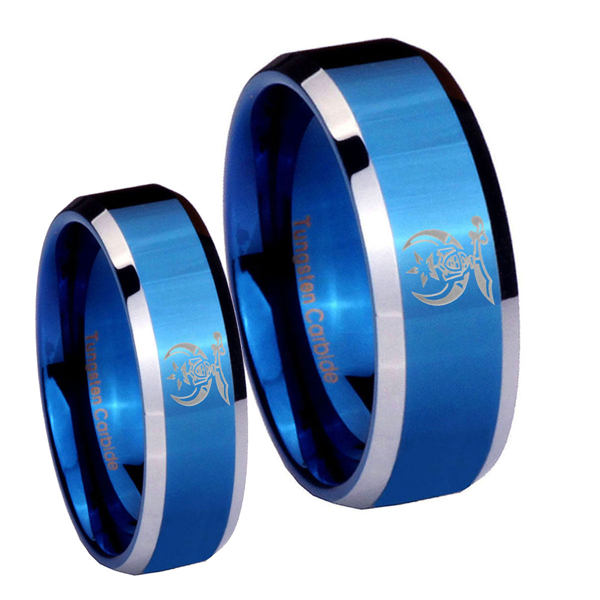His Hers Masonic Shriners Beveled Blue 2 Tone Tungsten Engraving Ring Set