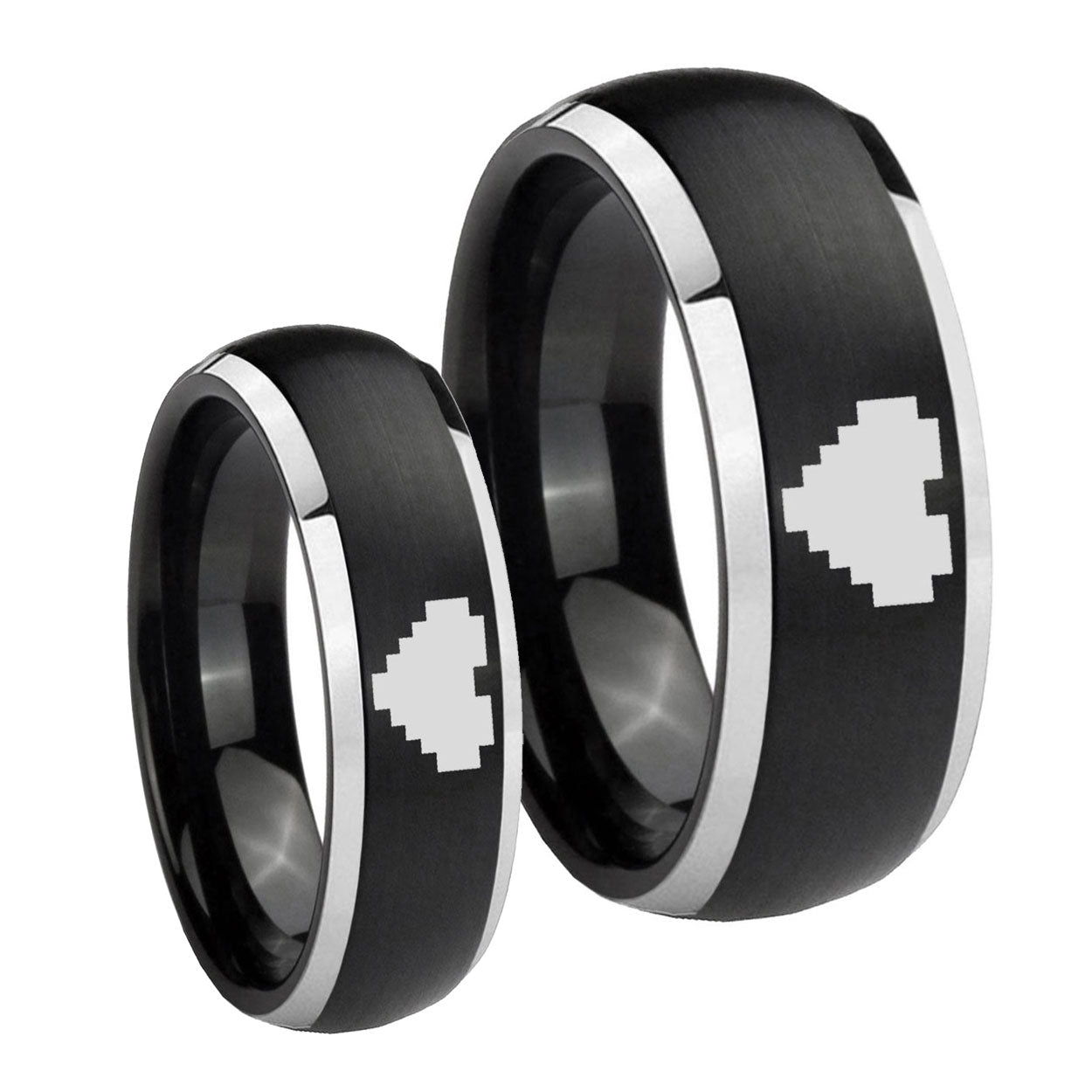 His Her Matte Dome Zelda Heart Two Tone Tungsten Carbide Wedding Rings Set